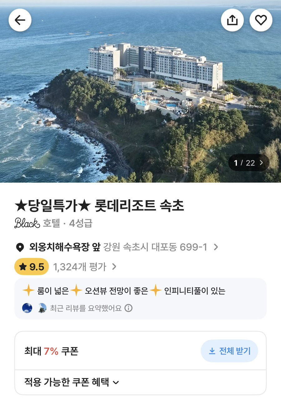 롯데리조트 속초는 올해 오픈런 BEST에 선정될 만큼
