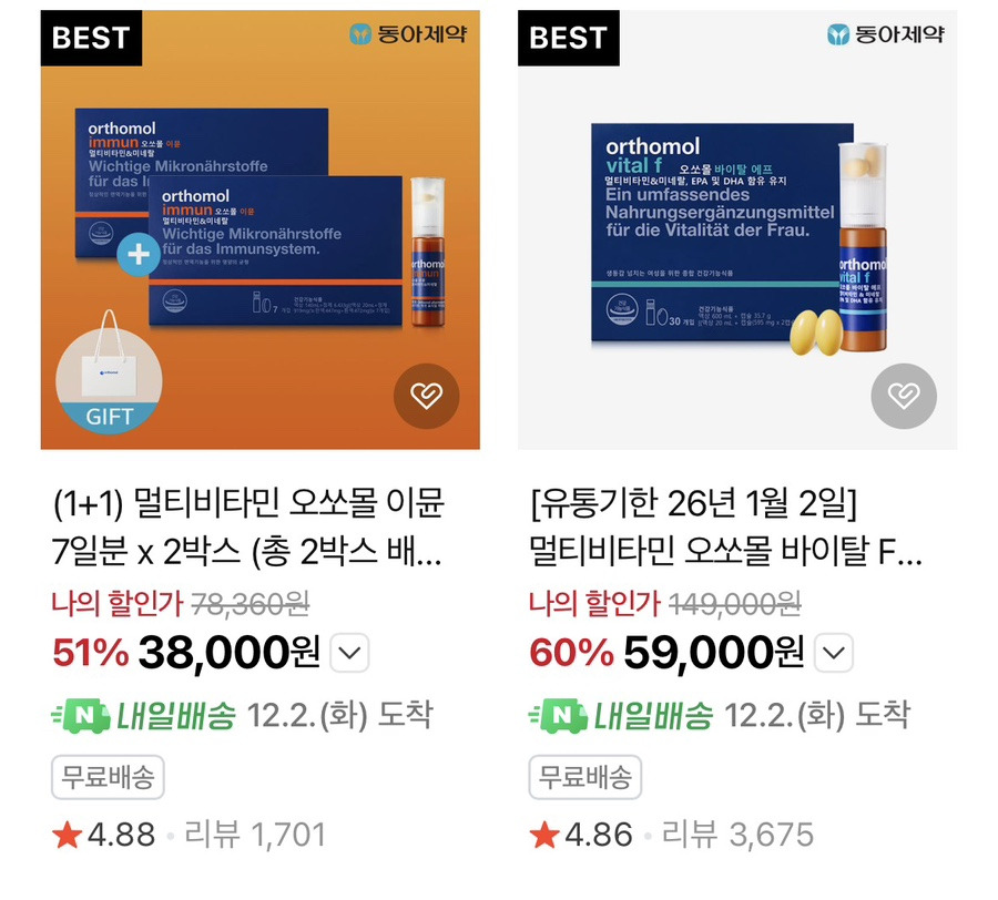 오쏘몰 자체가 마트보다 온라인이 더 비싼 경우 많아서