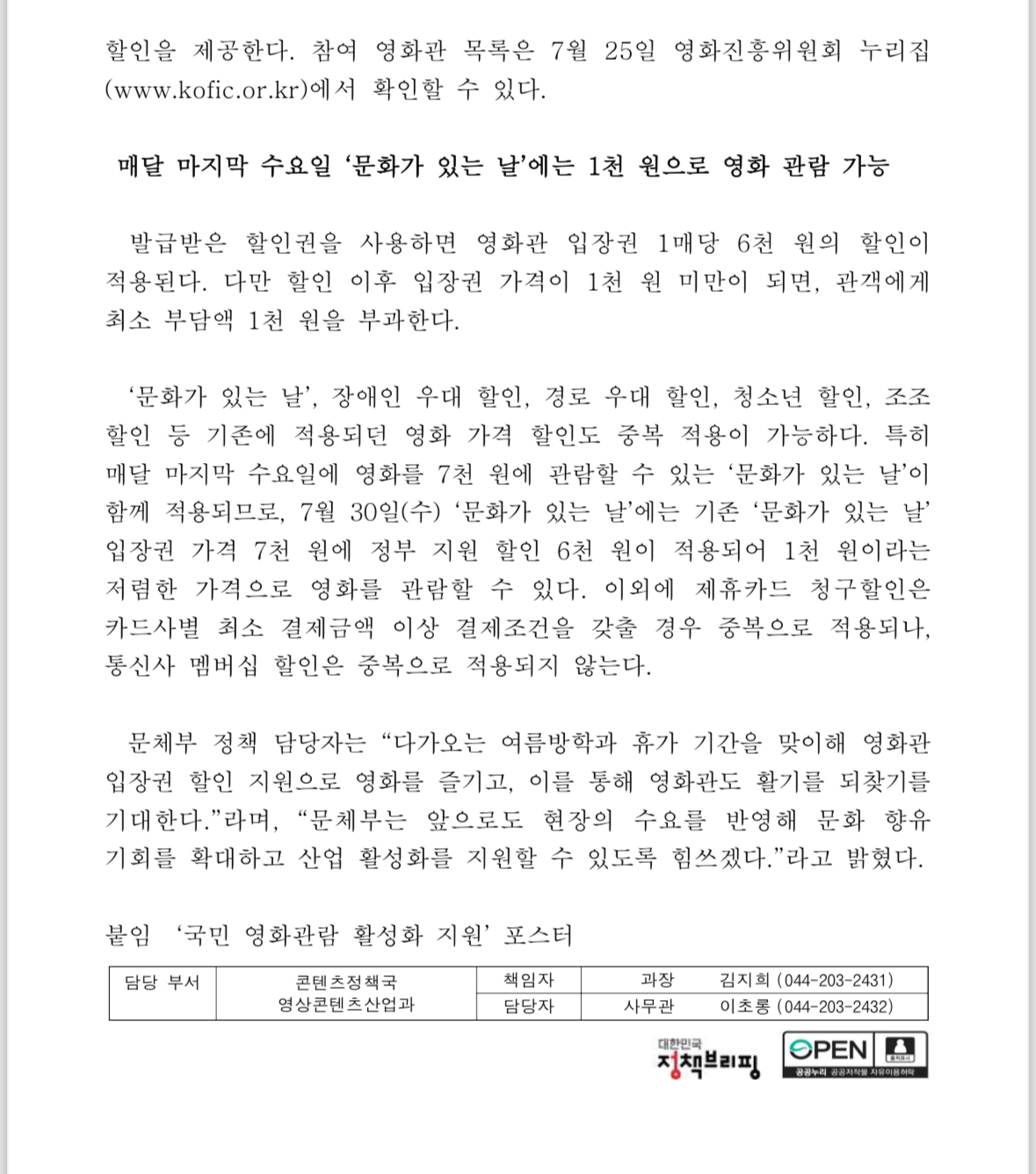 - 문화가 있는 날 = 영화 1,000원 가능!