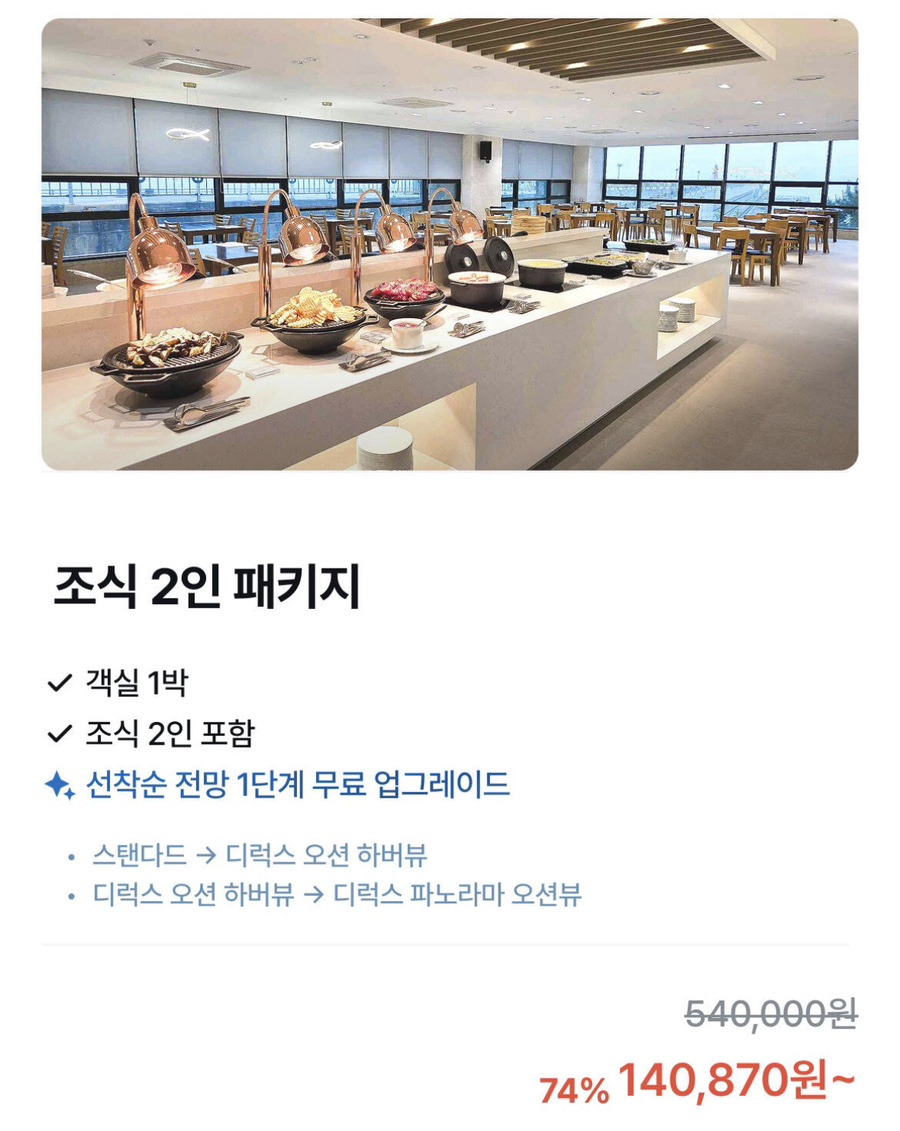 전망 업그레이드는 선착순 적용이라 예약이 빠를수록