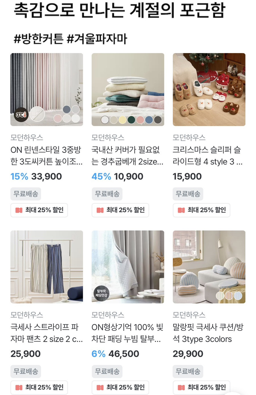 모던하우스는 색감이 조금 더 미니멀한 느낌이라