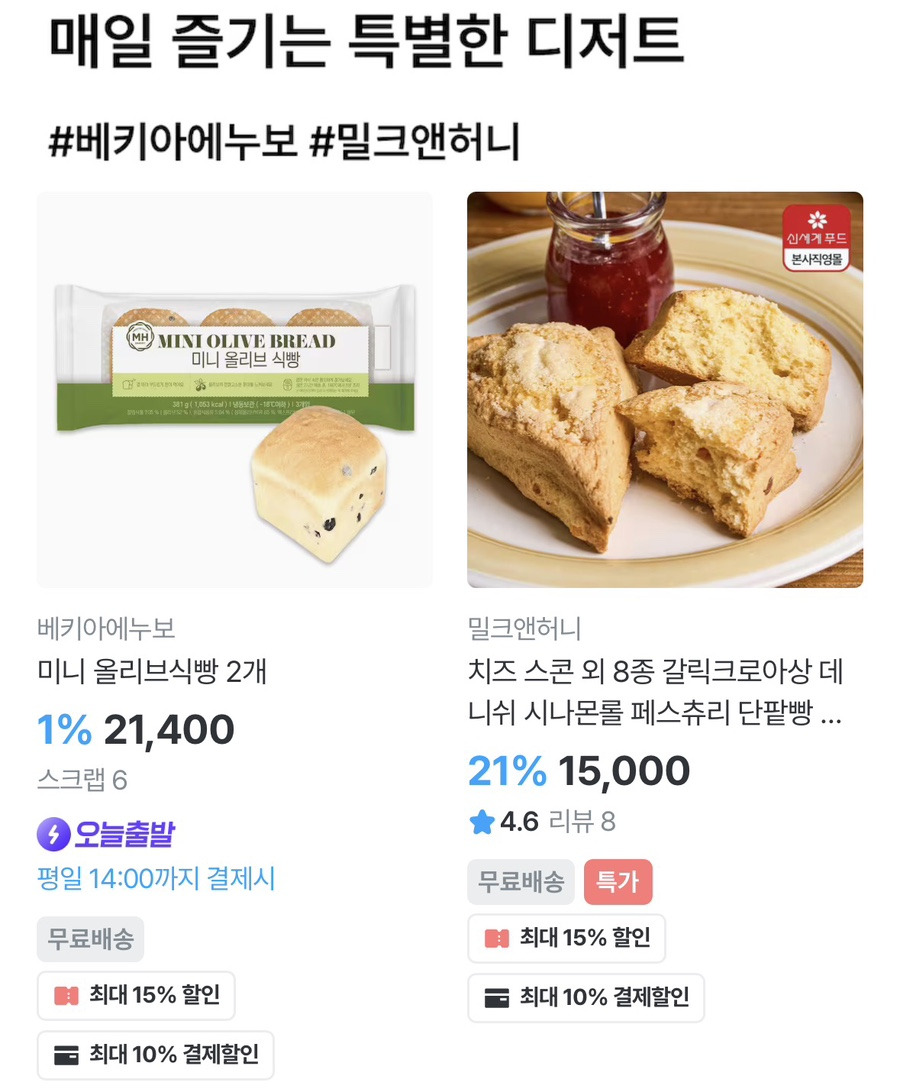 특히 반응 좋은 카테고리가 바로 베이커리예요