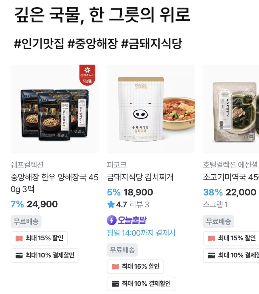 국물류(중앙해장·금돼지식당) 출고 빠름