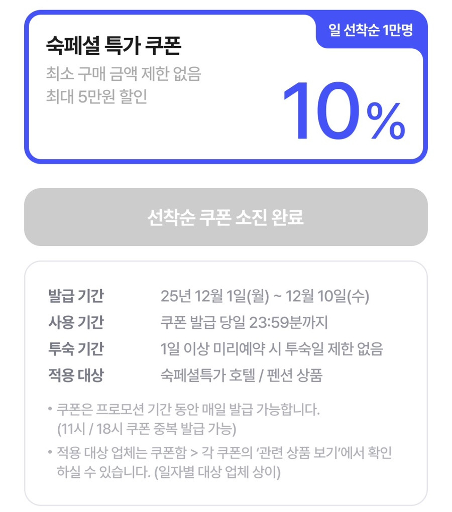 이번 숙페셜데이는 선착순 쿠폰 + 숙소 특가