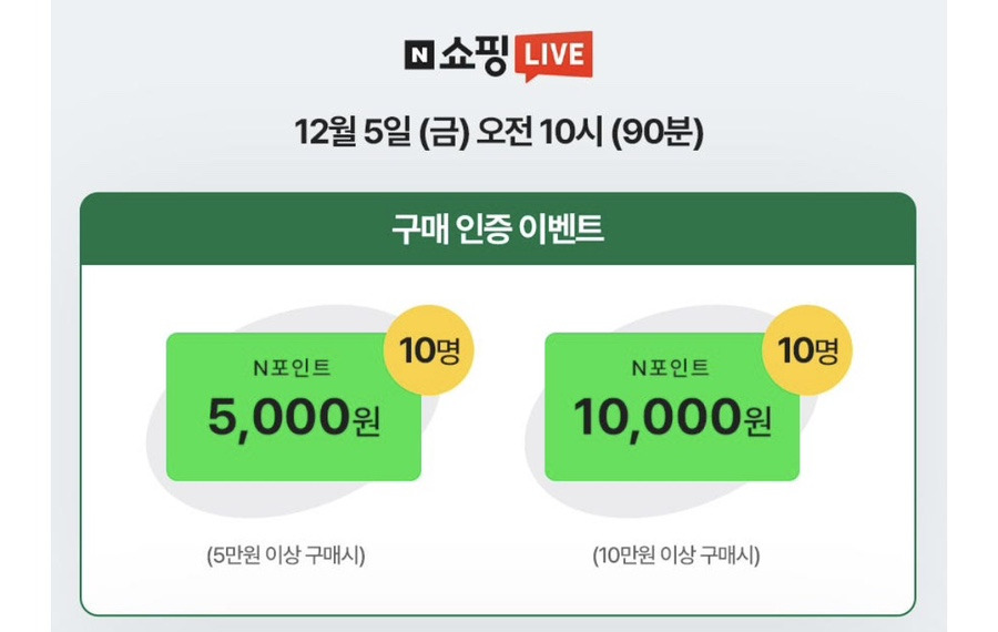 5만 원 이상 구매 시 N포인트 5,000원(10명)