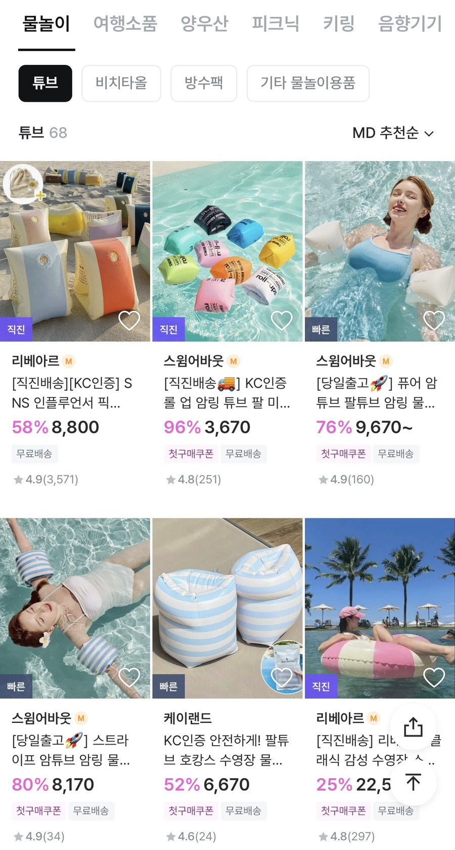 물놀이 튜브랑 비치타월 같은 여름템도 그대로 남아있고