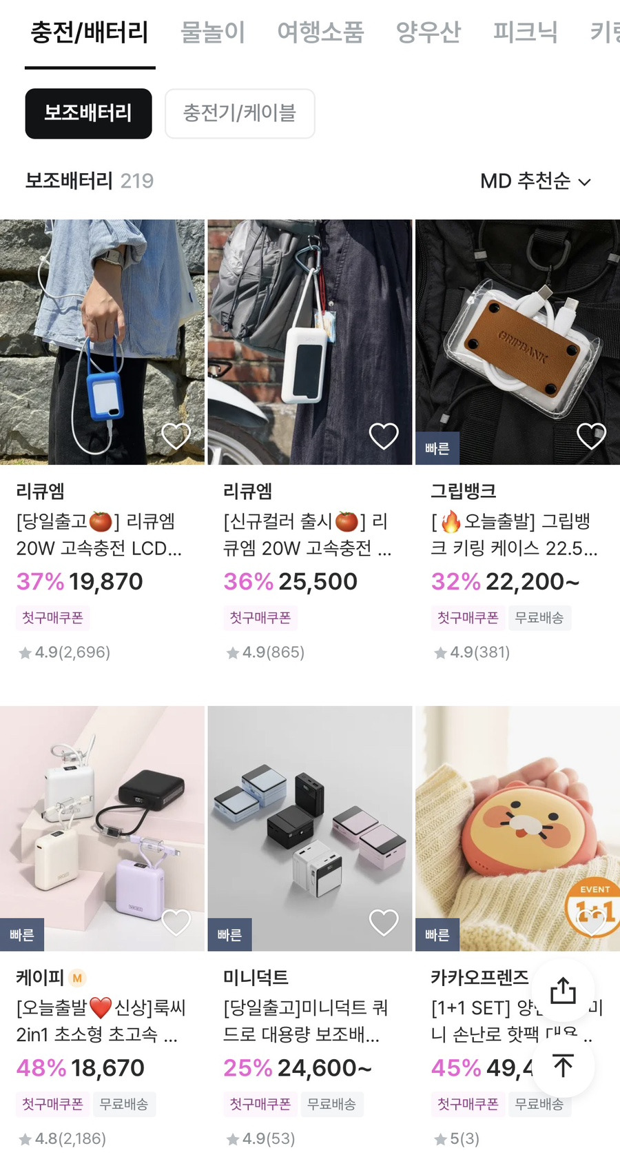 보조배터리 쪽은 리큐엠이랑 케이피 제품들
