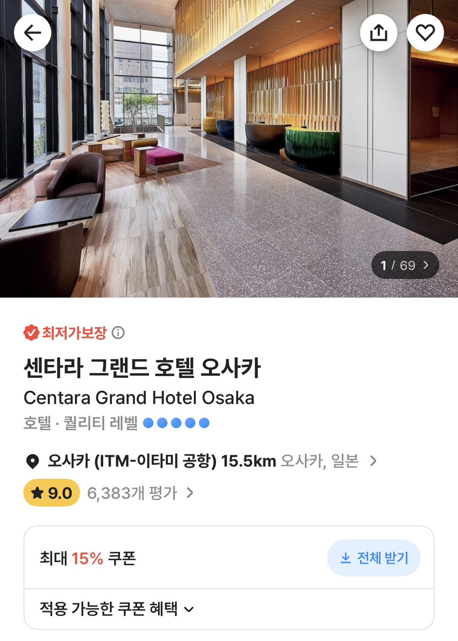 일본 오사카 신상 5성급 호텔 특가 확인하기