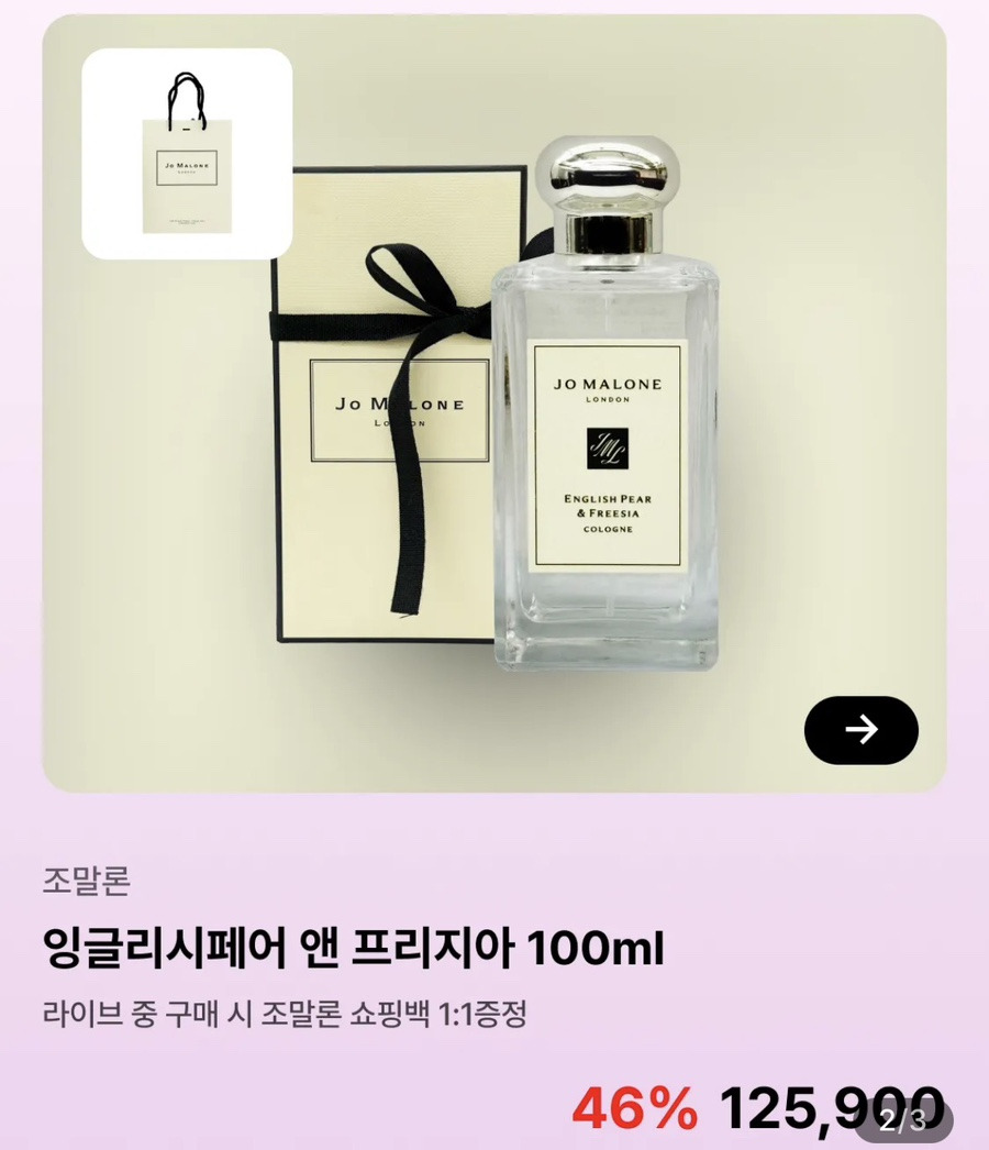 라이브 중 구매하면 조말론 쇼핑백도 같이 증정돼서
