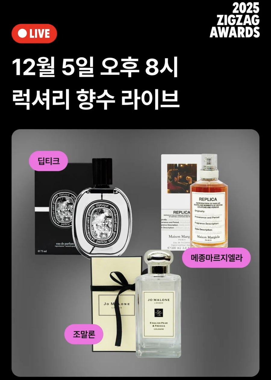 12월 5일 저녁 8시에 럭셔리 향수 라이브까지 열려서