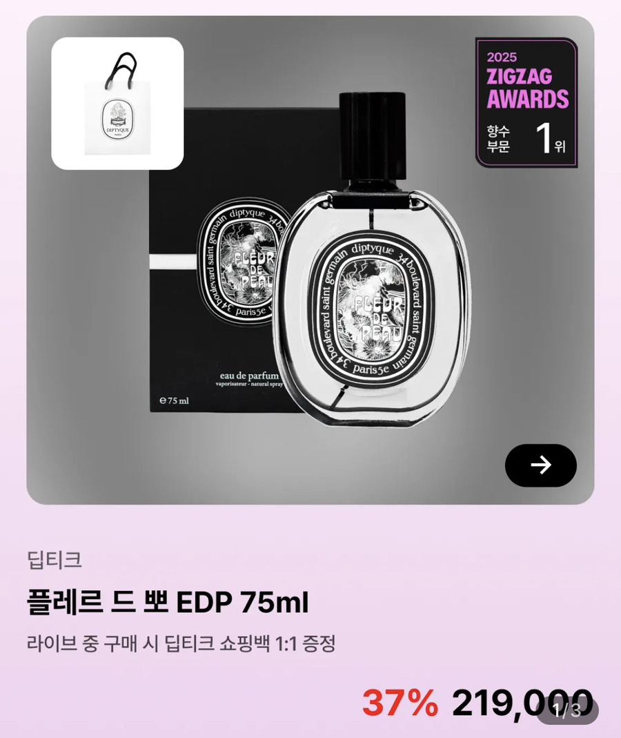 라이브 중 구매하면 딥티크 쇼핑백도 1대1로 챙겨줘서