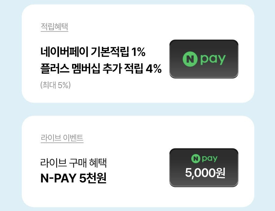 라이브 중 구매 시 N페이 5,000원 즉시 지급