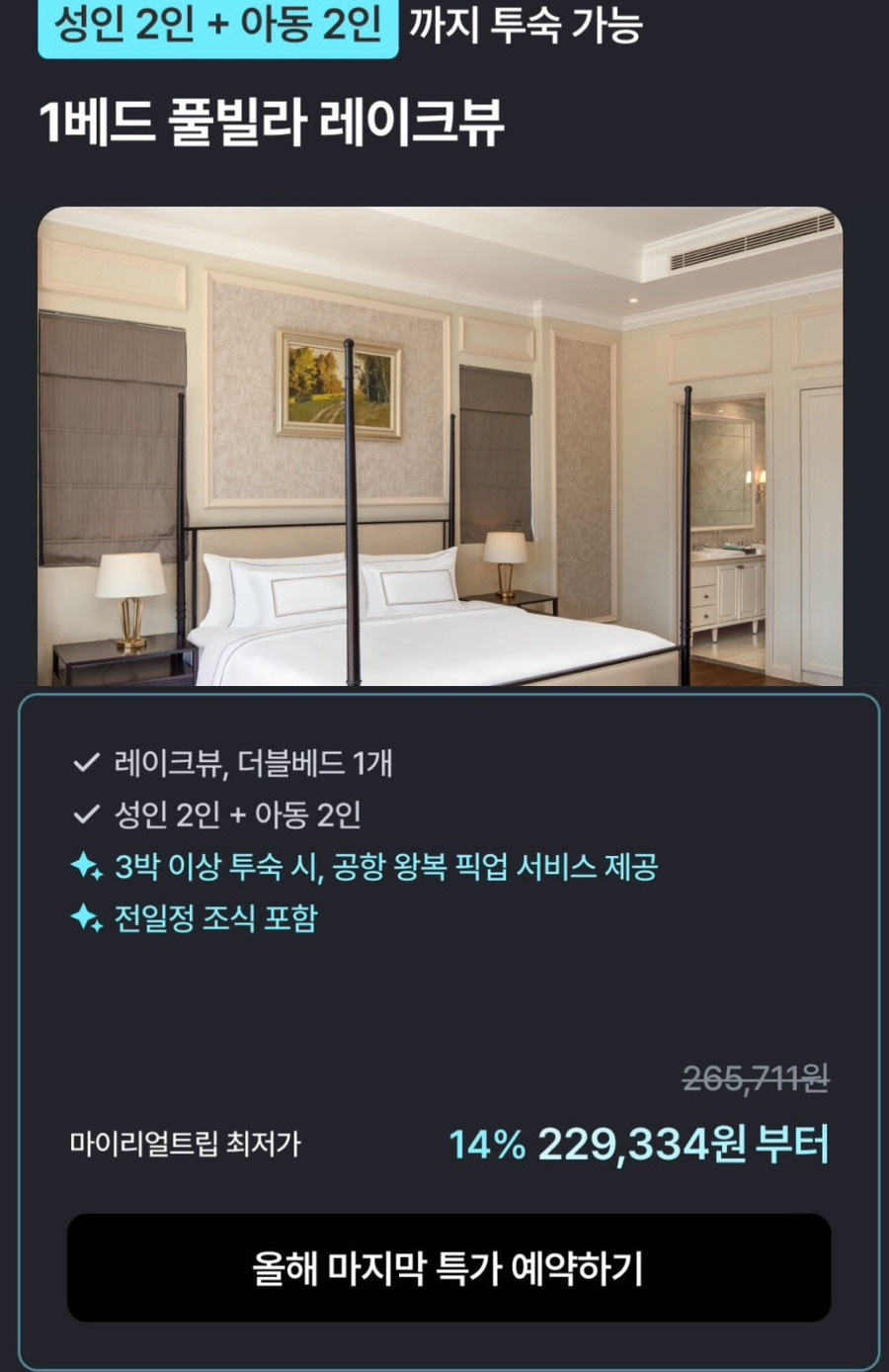 1베드 풀빌라 레이크뷰 (성인2 + 아동2)