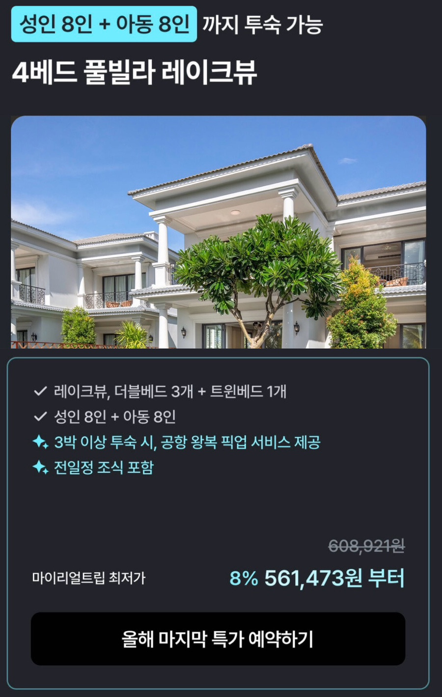 3베드 풀빌라 레이크뷰 (성인6 + 아동6)