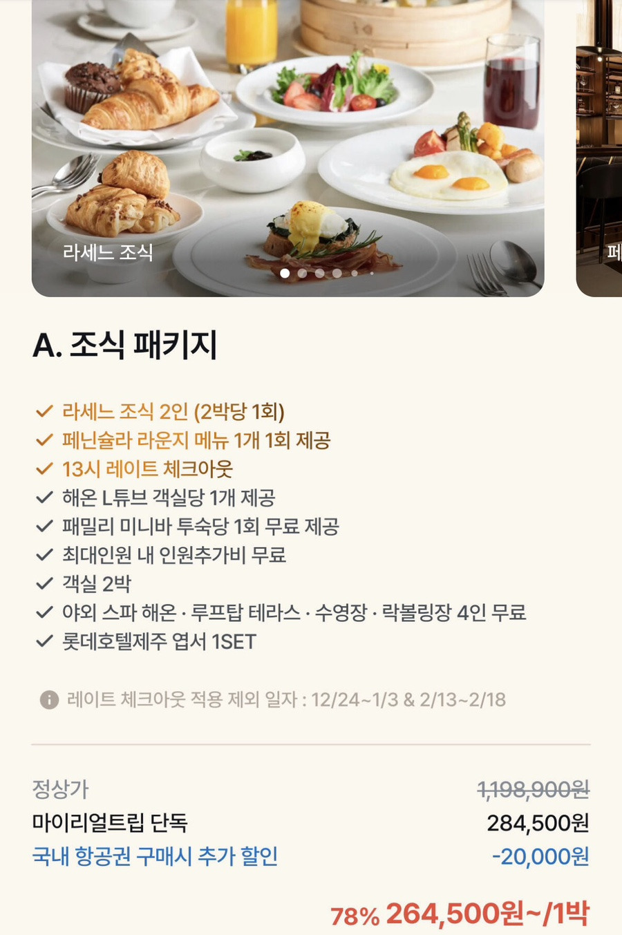2박 이상부터는 레이트 체크아웃 + 라운지 메뉴 추가