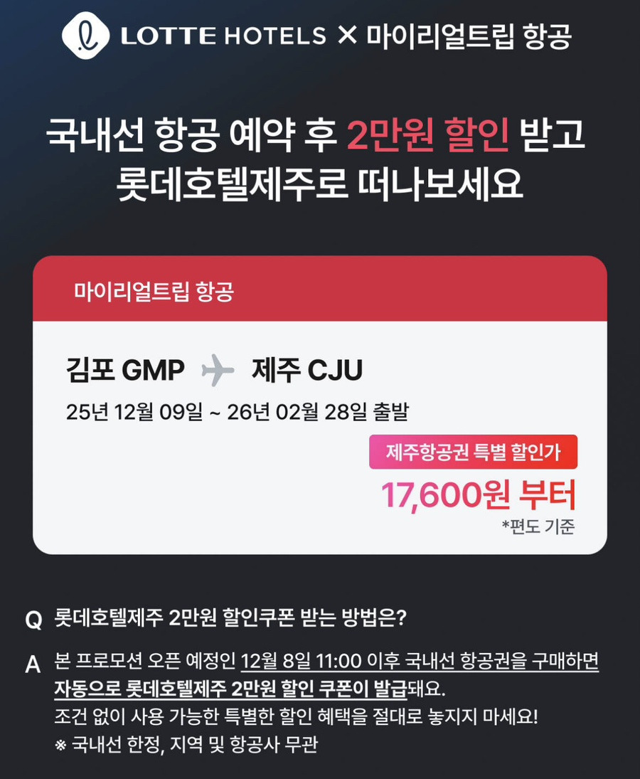 국내선 항공권 구매하면 2만원 즉시 할인쿠폰도 주고