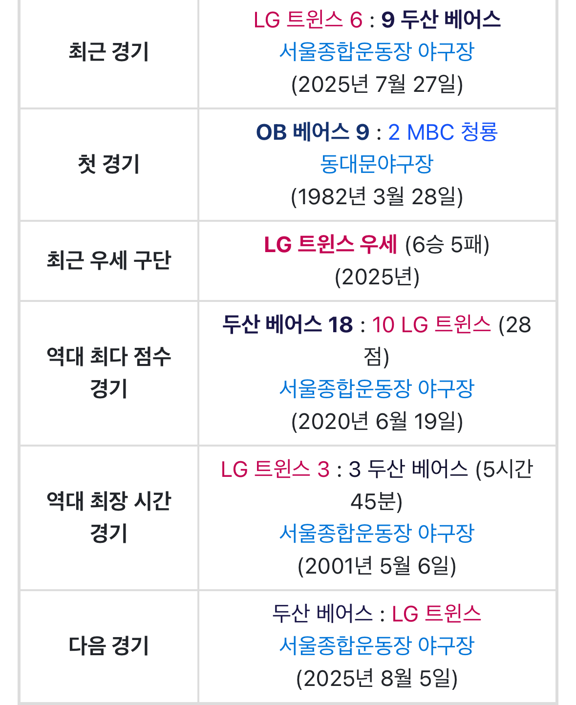 7/27 (일) – 잠실더비 400승! 레전드 역전극