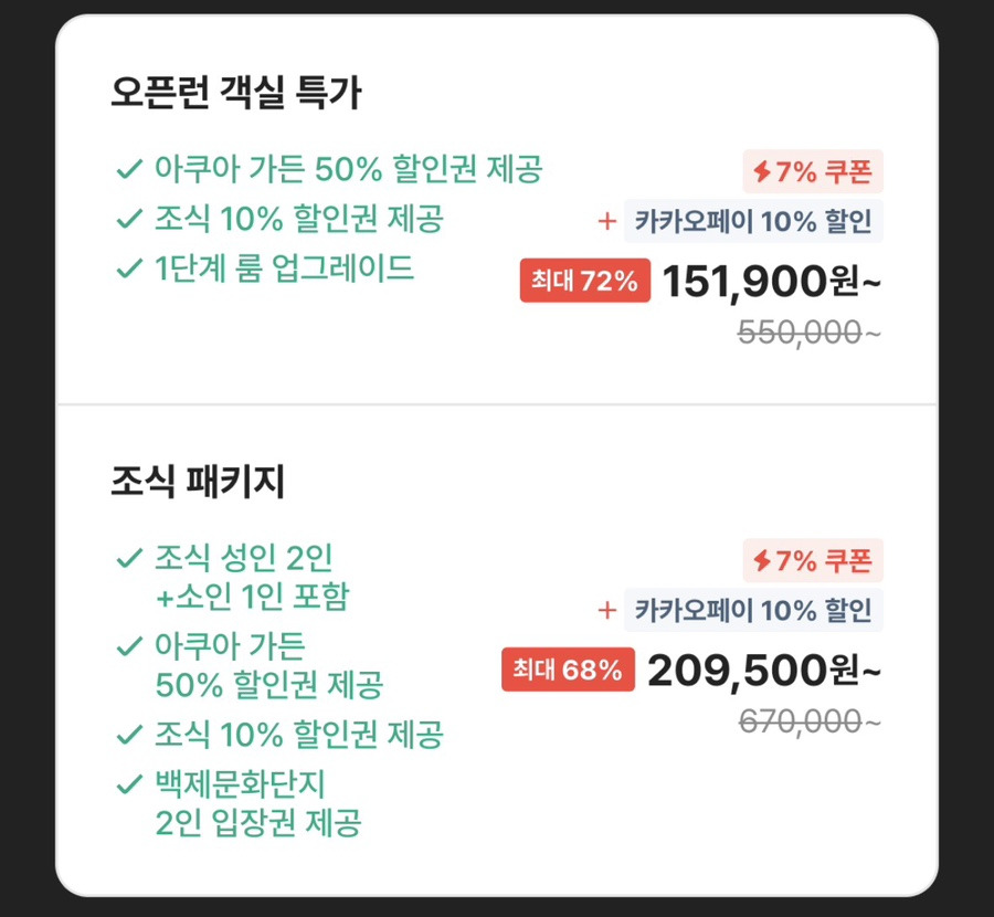 특히 아쿠아 가든 + 백제문화단지 혜택