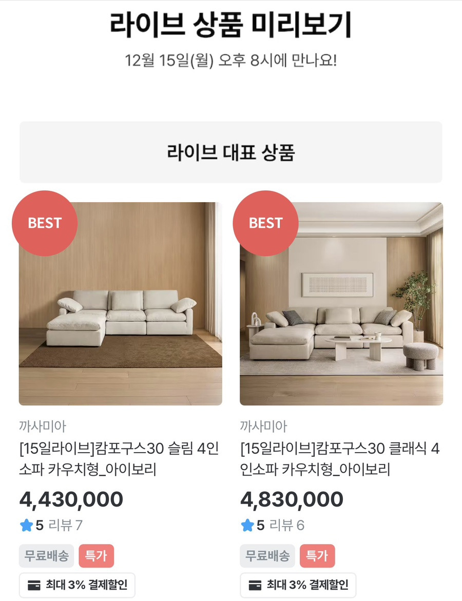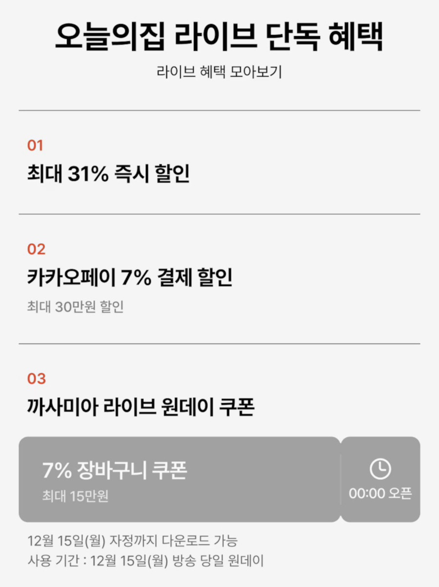 까사미아 오늘의집 라이브가 예정돼 있어요