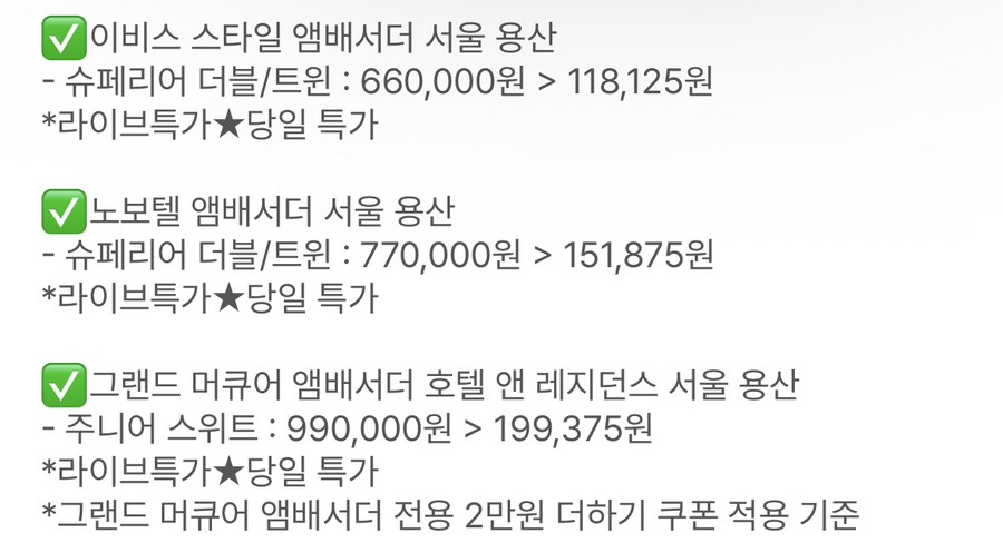 노보텔 앰배서더도 70만원대 → 15만원대