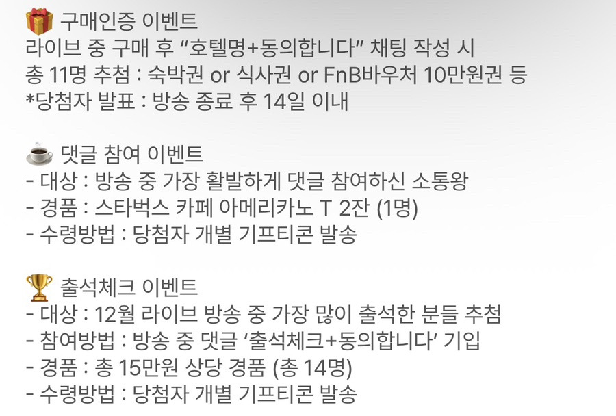 이번 라이브는 방송 중에만 적용되는 혜택이 있어서