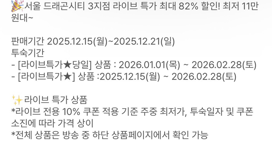 서울 드래곤시티 3지점이 라이브 특가로 풀리는데