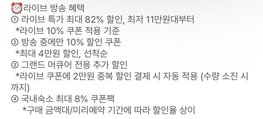 라이브 전용 10% 쿠폰이 따로 있고