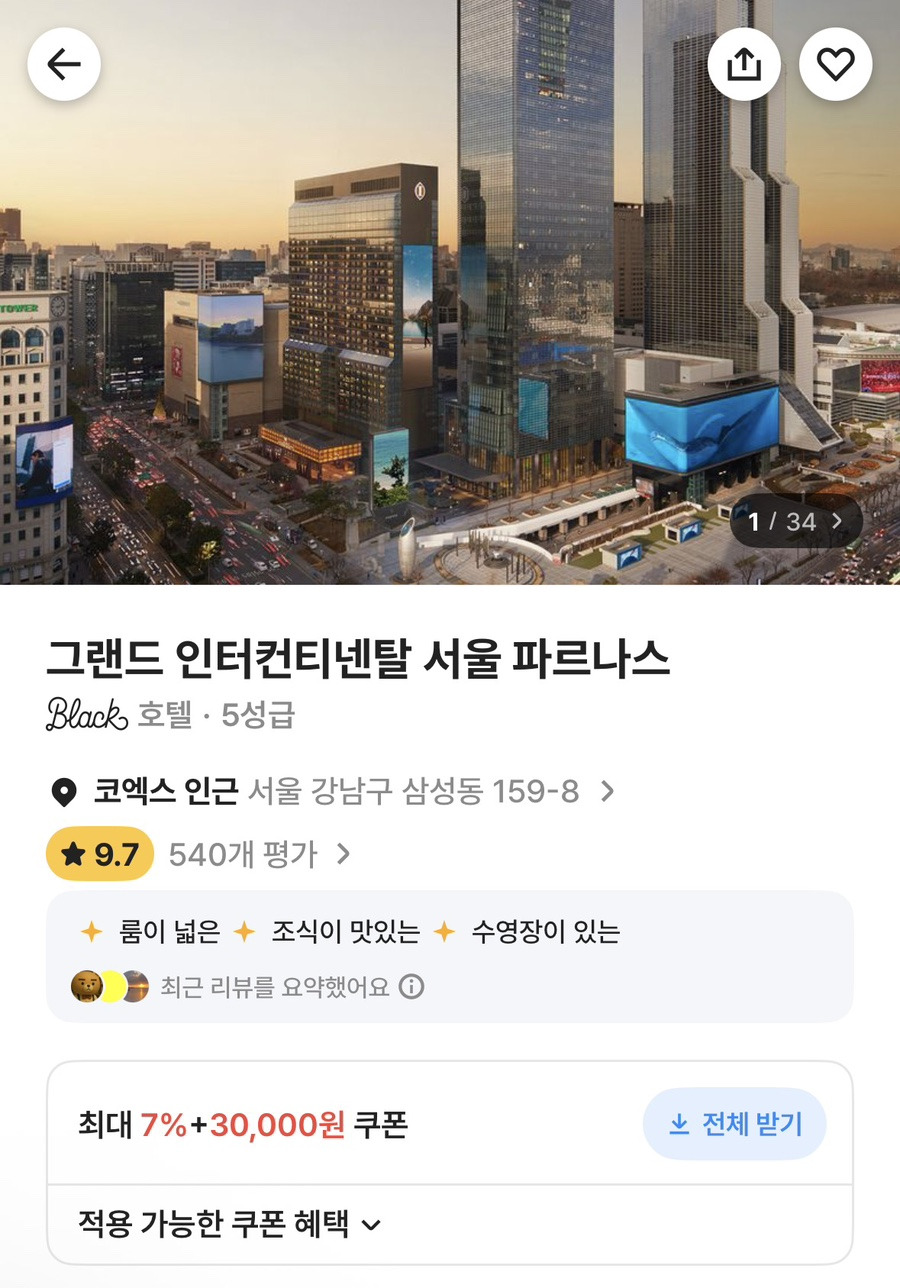 그랜드 인터컨티넨탈 서울 파르나스 특가 확인하기