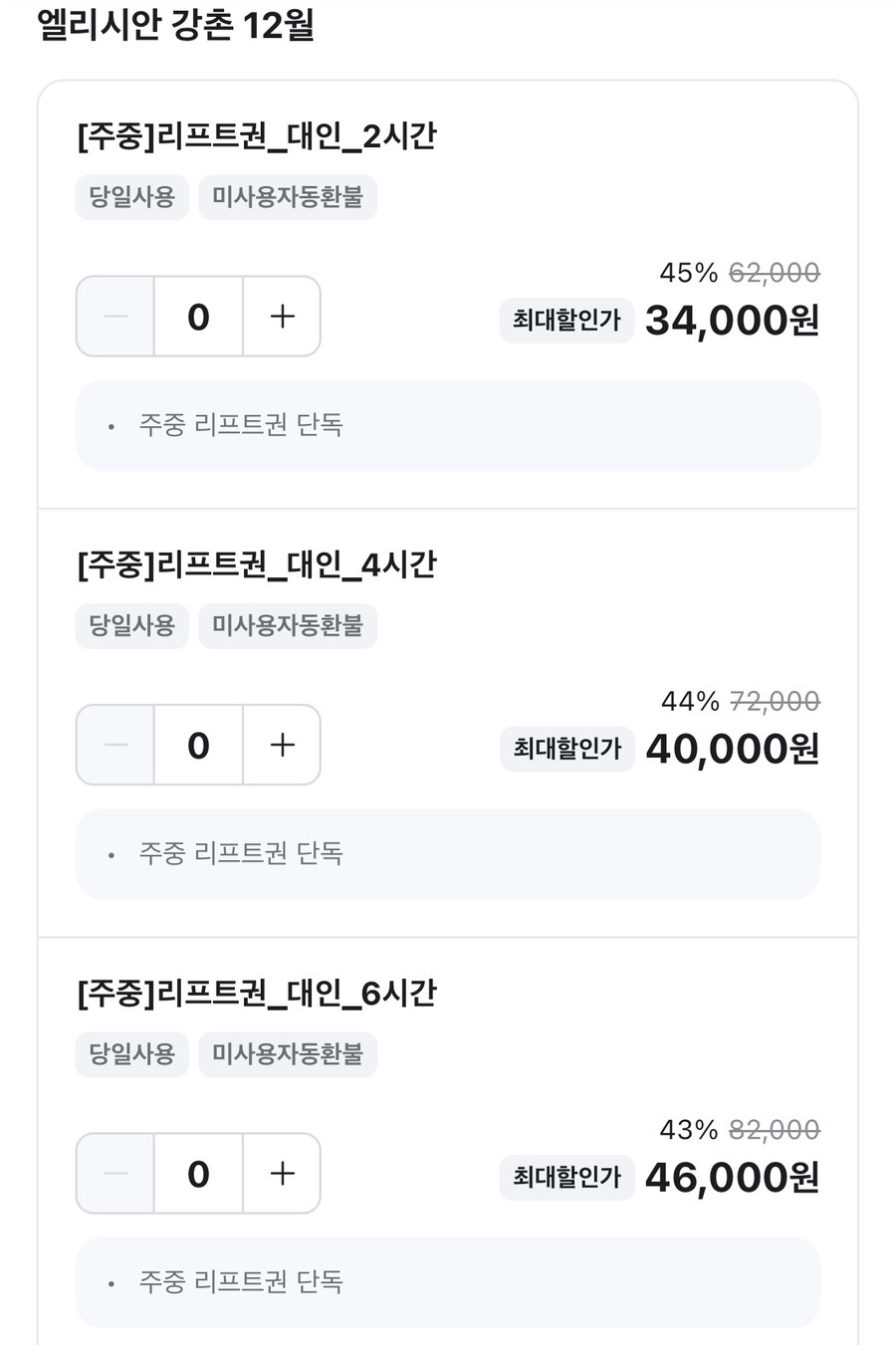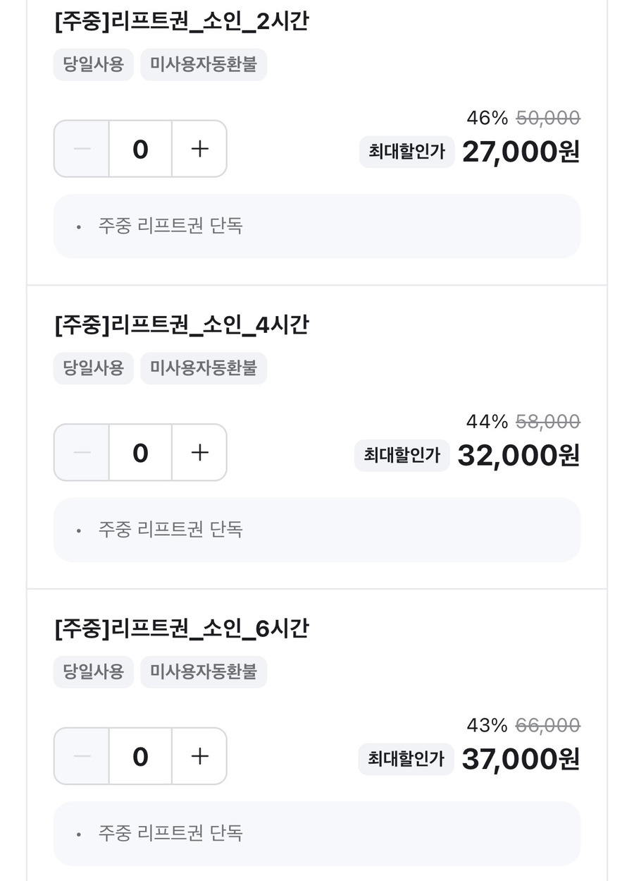 → 주중 2~4시간권이 제일 가성비 좋아요