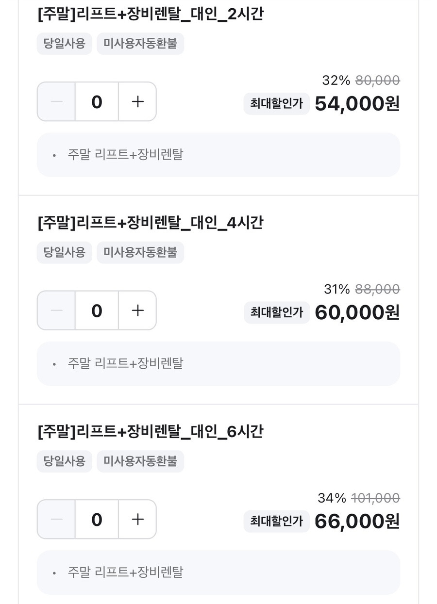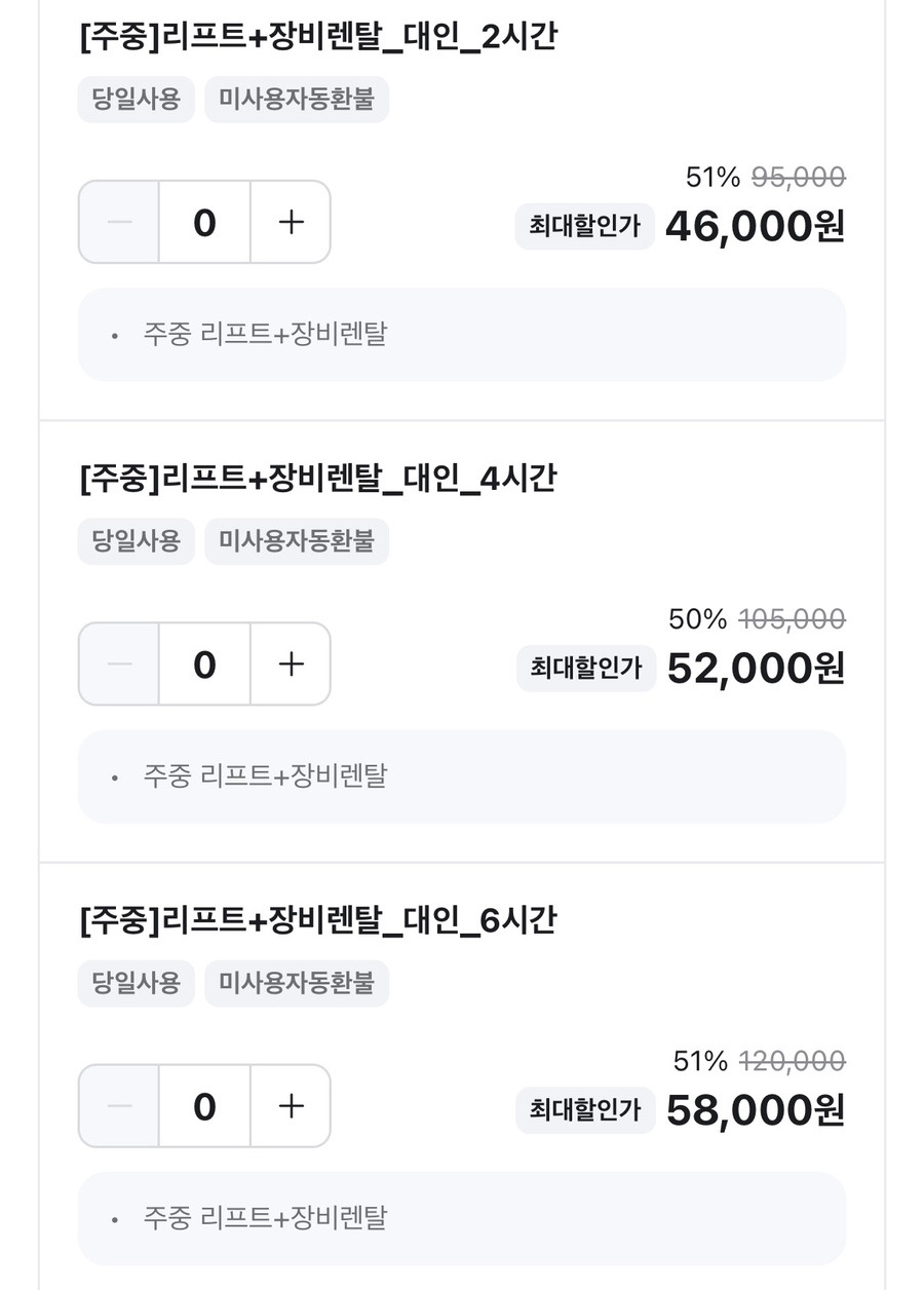 → 리프트+장비렌탈 PKG가 제일 편함