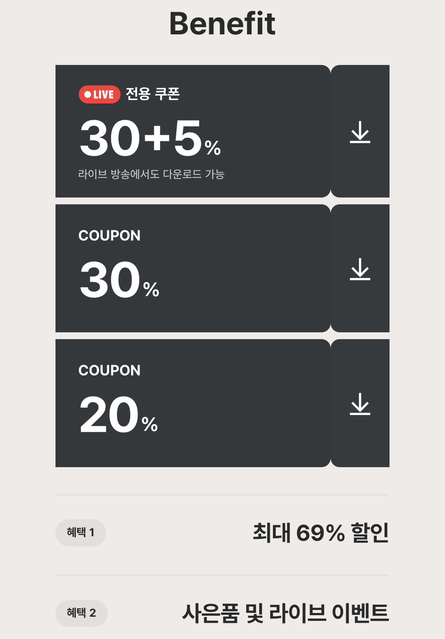 라이브 전에도 쿠폰 다운로드는 가능하지만