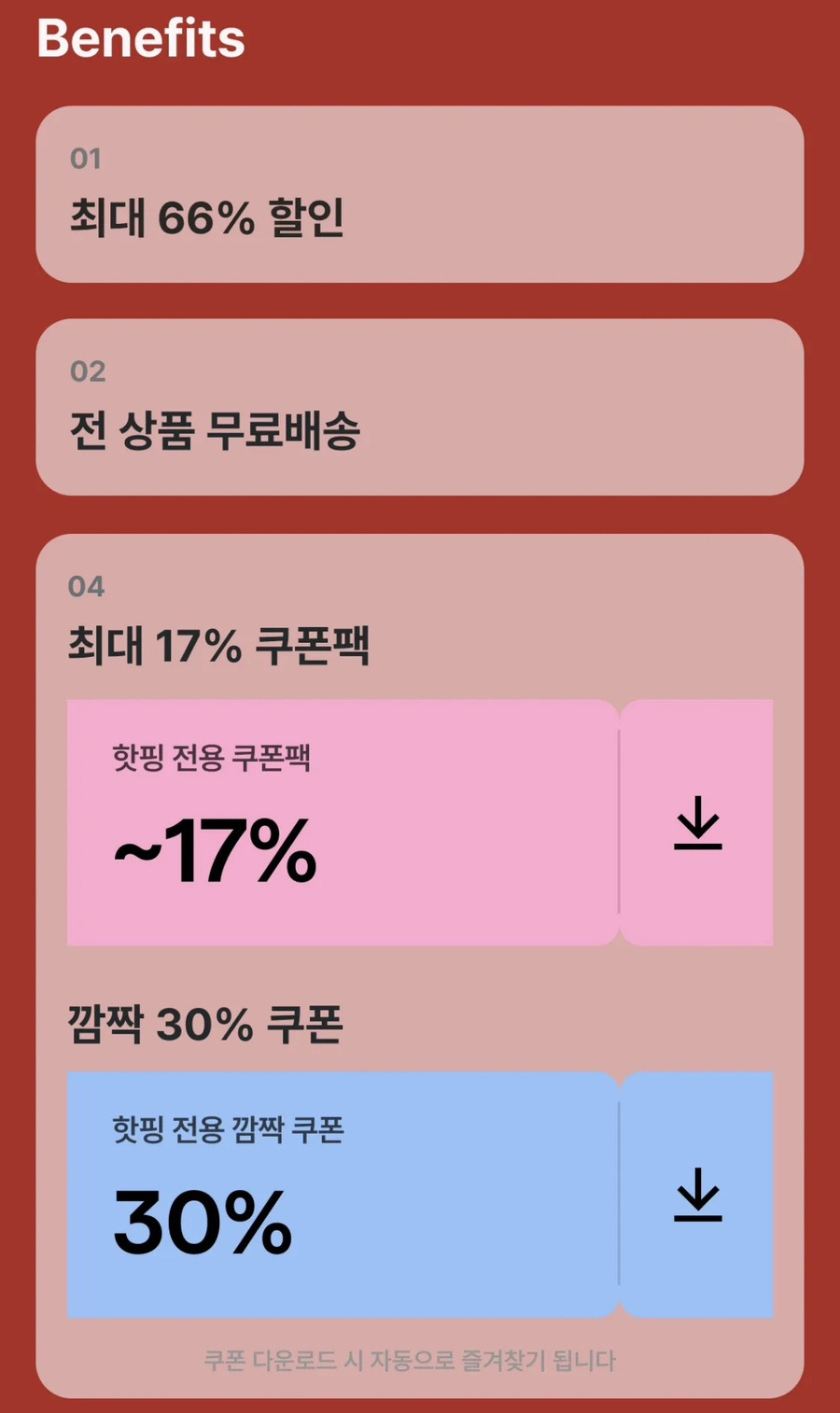 핫핑 전용 쿠폰팩은 자동으로 적용되고