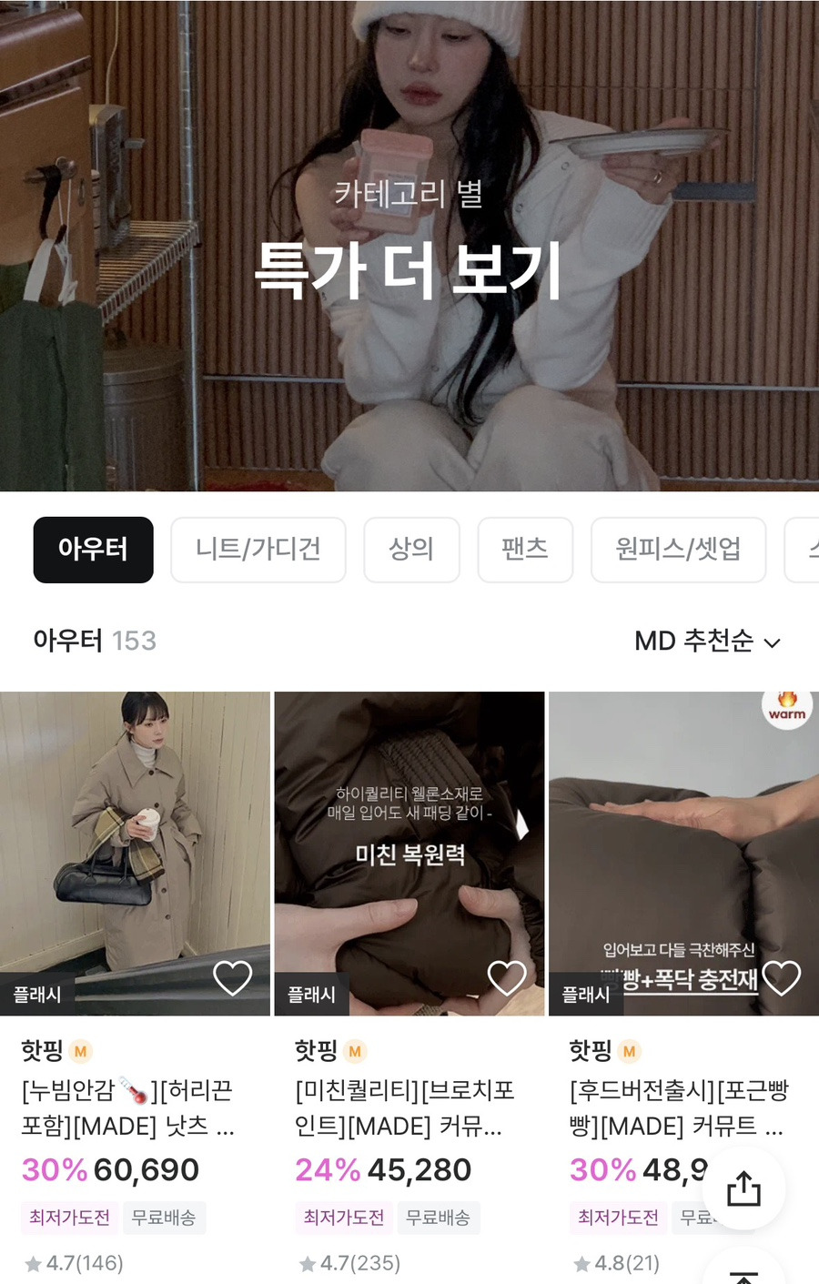 겨울 아우터랑 니트 쪽 보고 있었는데
