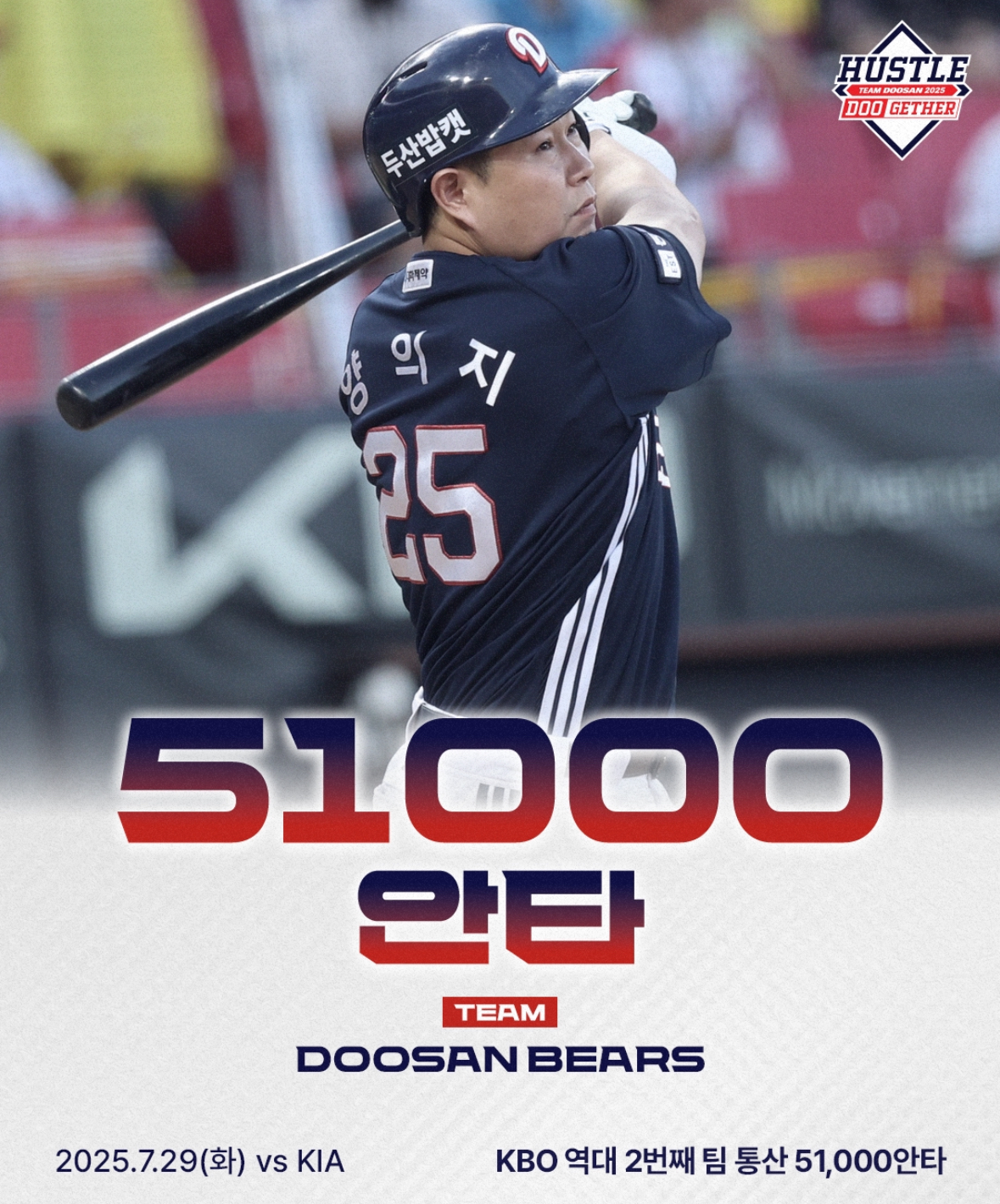 오늘 양의지가 팀 통산 51,000번째 안타 주인공 됐어요