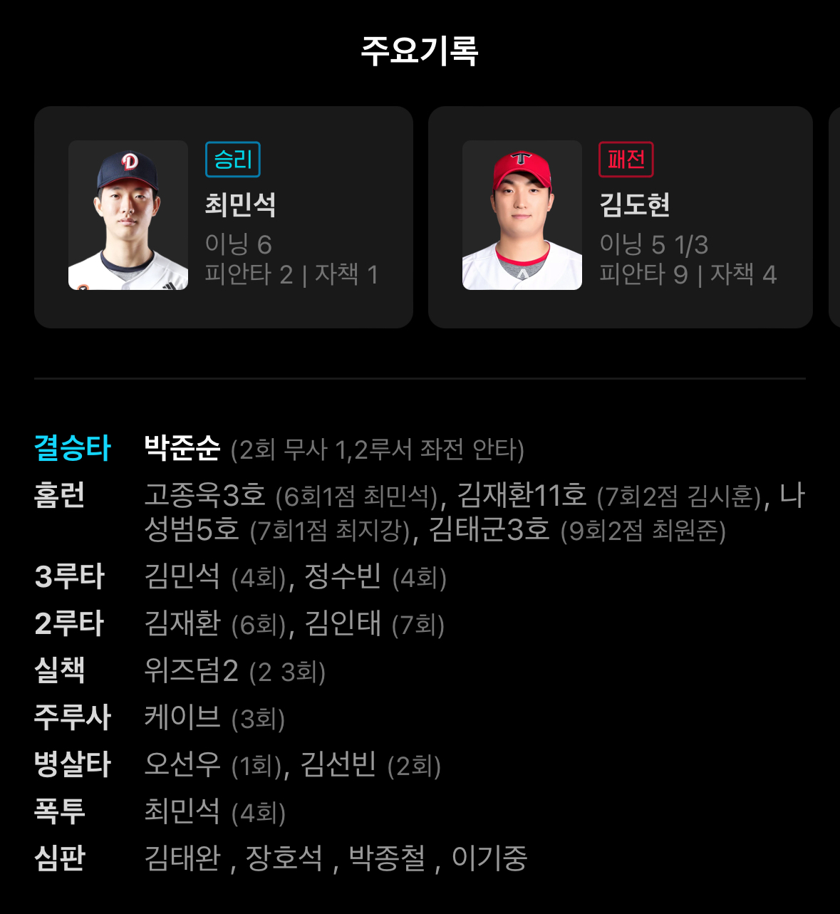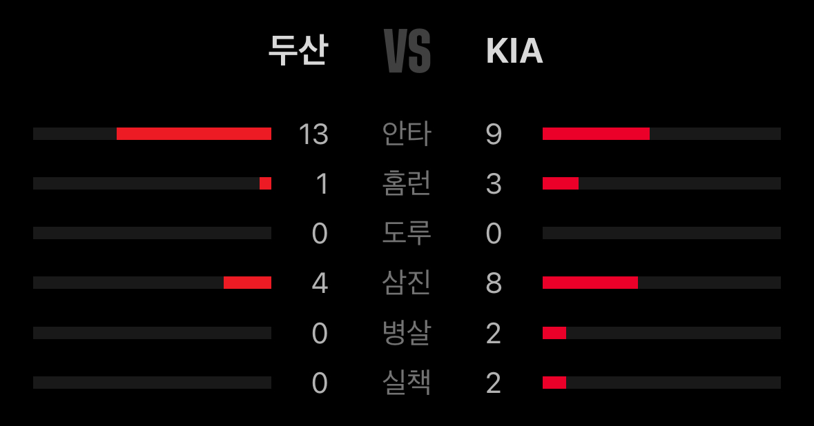 - 홈런은 KIA가 더 많았지만 흐름은 두산이 다 잡음