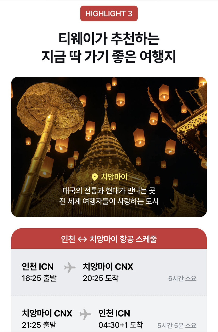 이번 티웨이 라이브의 핵심은 전 노선 단독 특가예요
