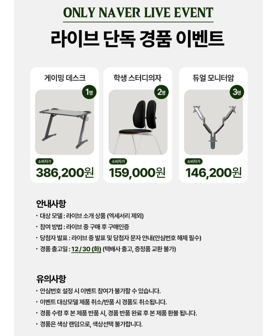 라이브 전용 쿠폰 + 적립 + 사은품 + 경품 이벤트까지 같이 들어가 있어서