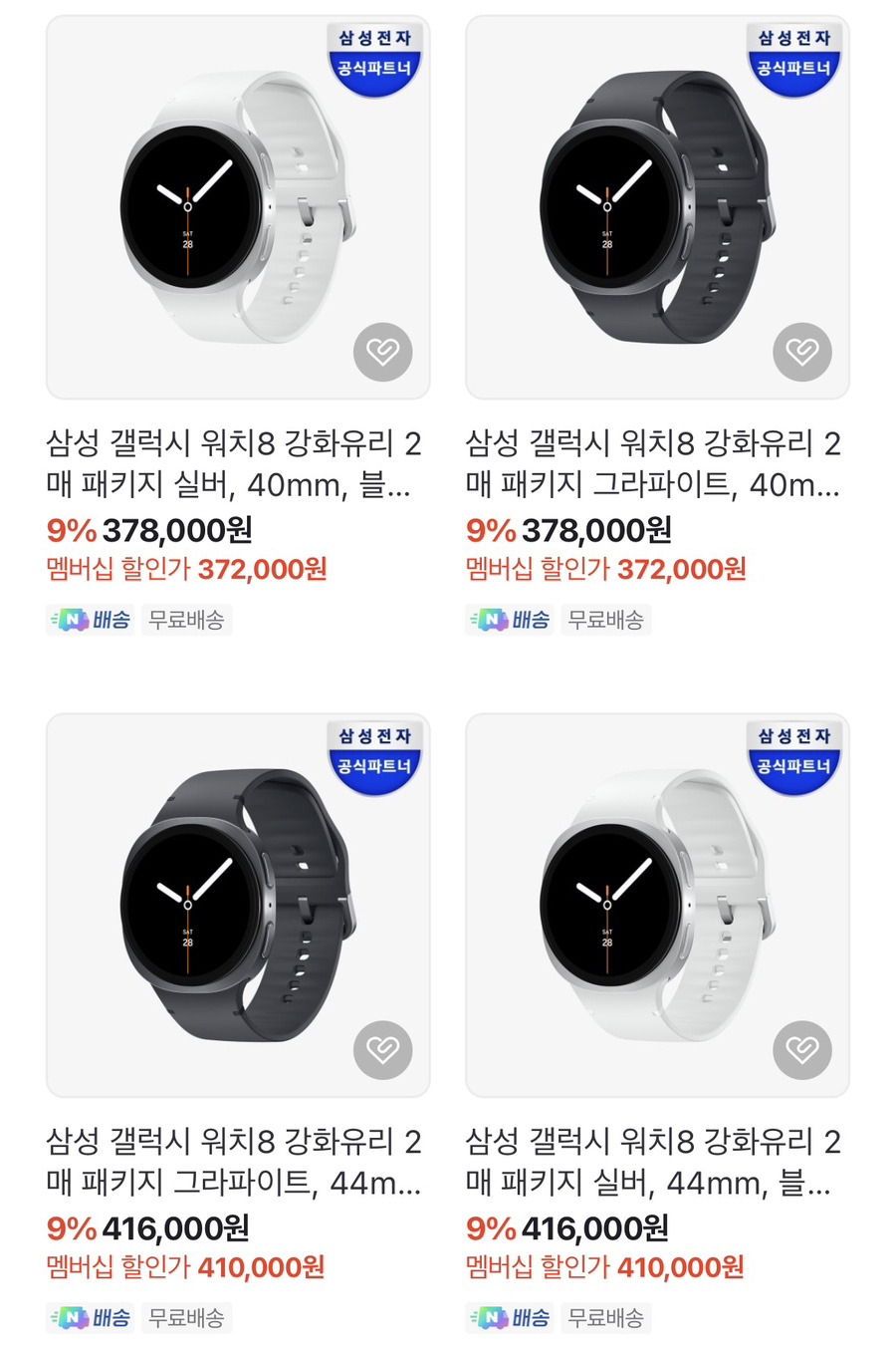 삼성 갤럭시 워치8 강화유리 2매 패키지 : 삼성파트너 쇼마젠시