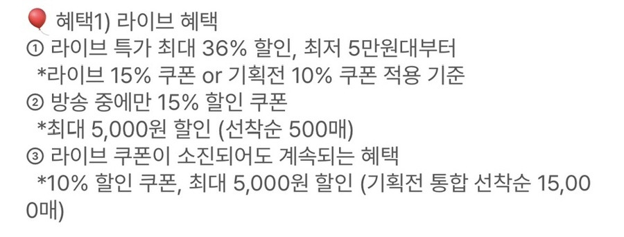 라이브 방송에서만 적용되는 할인 혜택
