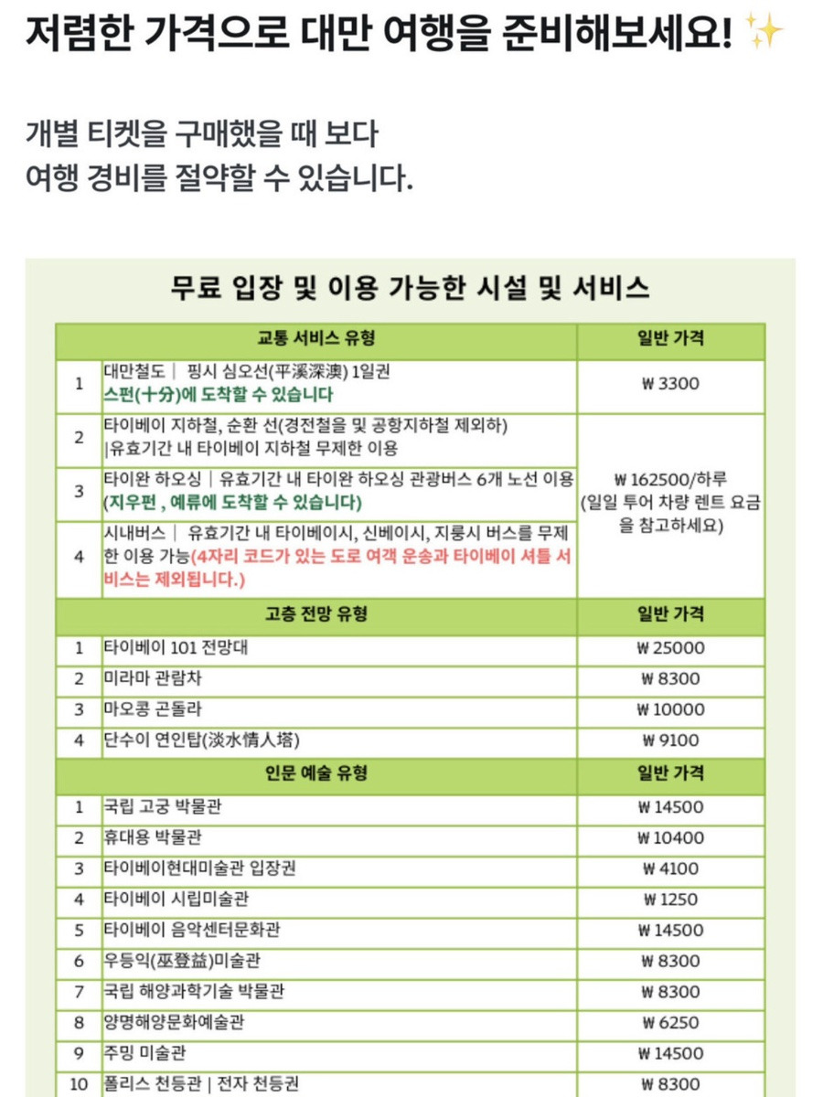 대만 타이베이 펀패스 선착순 특가 바로가기