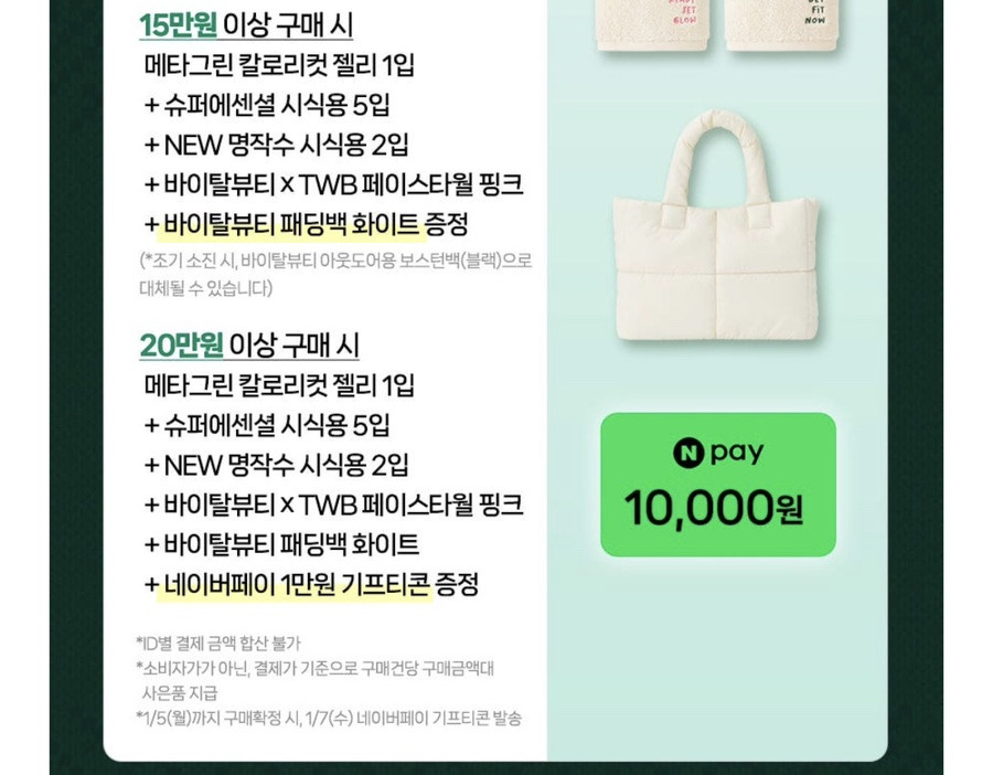 20만 원 이상 구매하면 네이버페이 1만 원