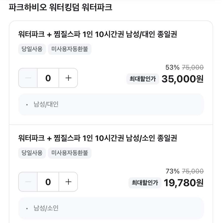 파크하비오 워터킹덤 워터파크+찜질스파 통합권이