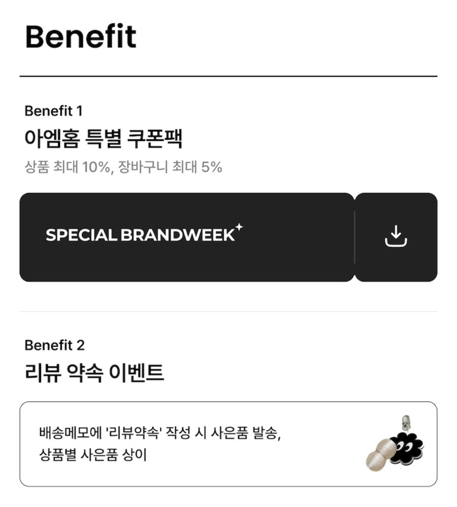 쿠폰팩 + 리뷰 이벤트 조합이에요