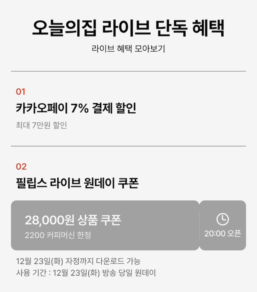 오늘의집 라이브 단독 혜택 정리