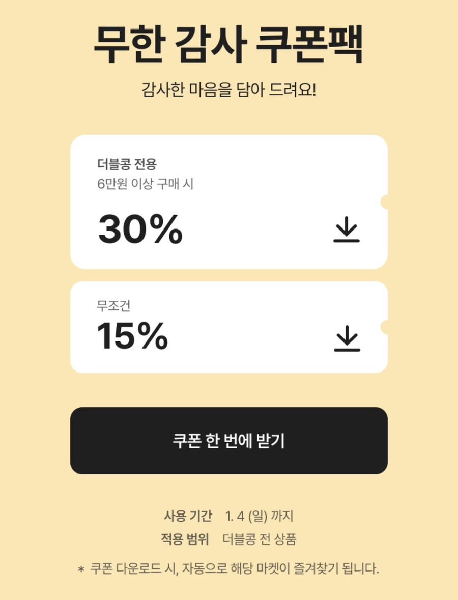 1개만 구매해도 바로 적용되는 15퍼 쿠폰이 있고
