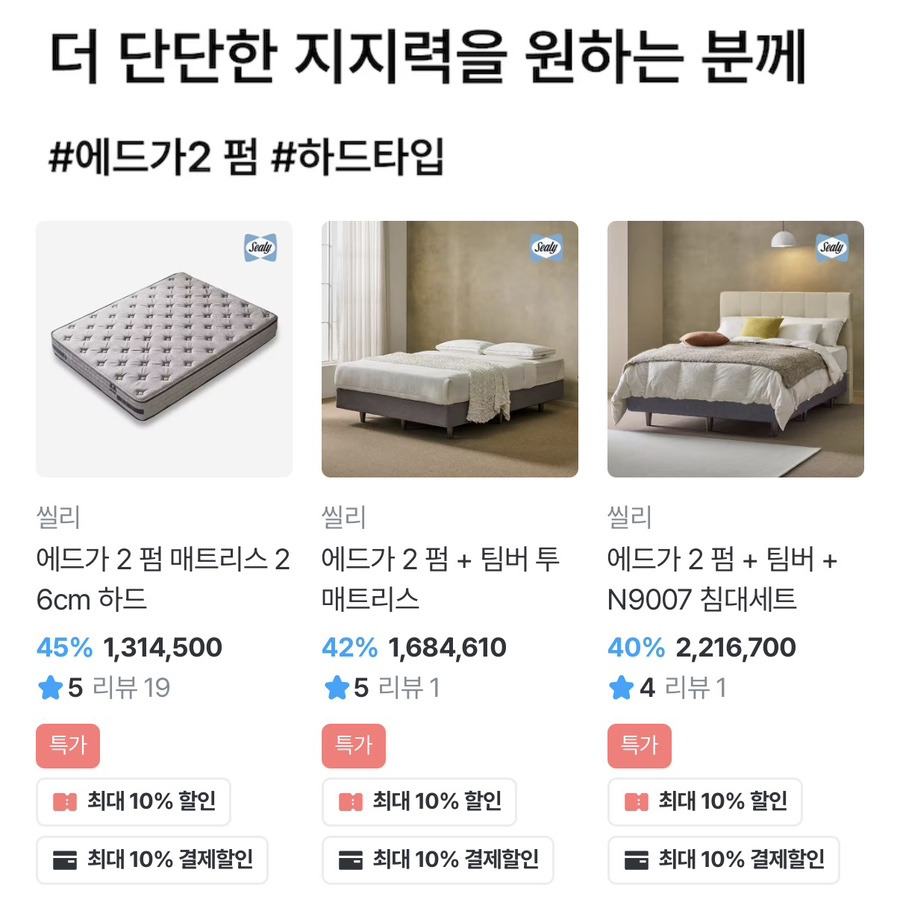 첫 씰리 매트리스로 선택하기 괜찮아 보여요