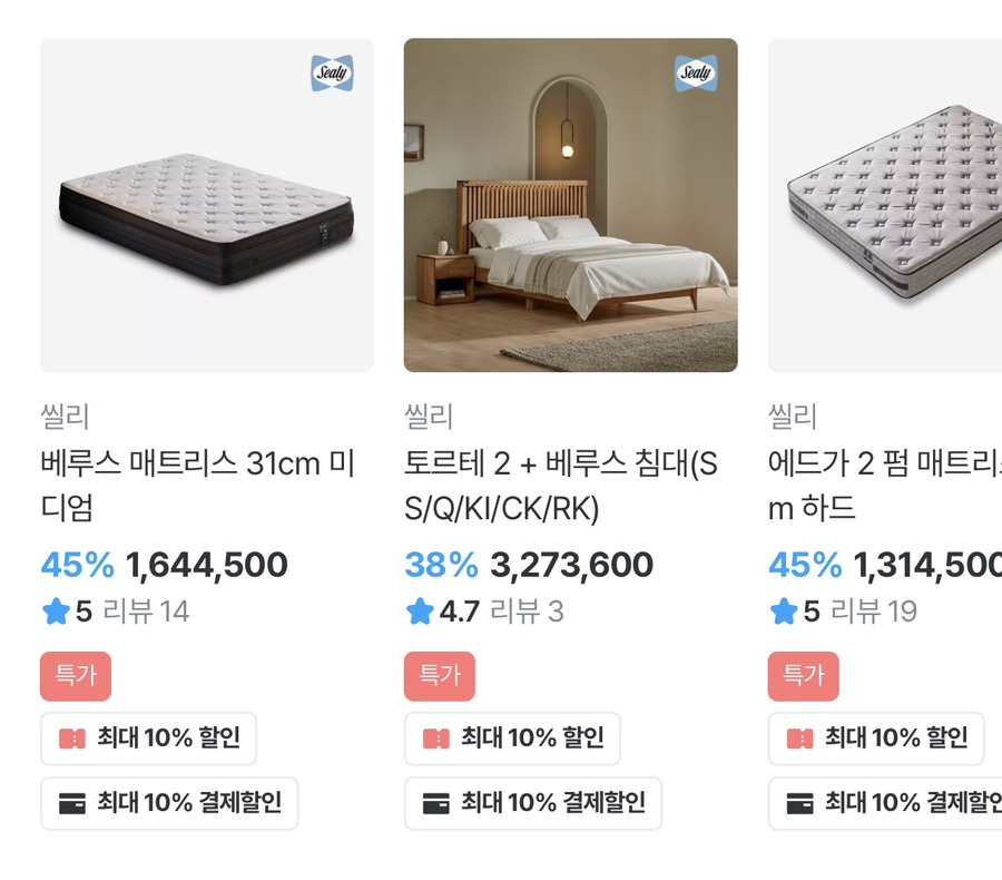 씰리 매트리스 브랜드위크 특가 확인하기