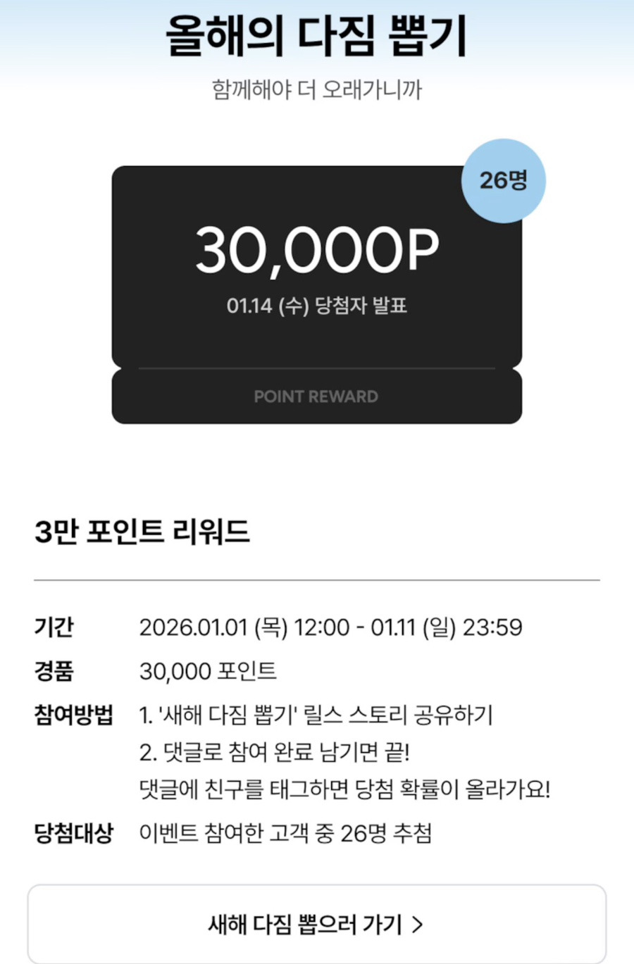 새해 다짐 뽑기 이벤트도 열려 있어요