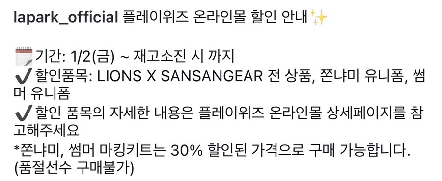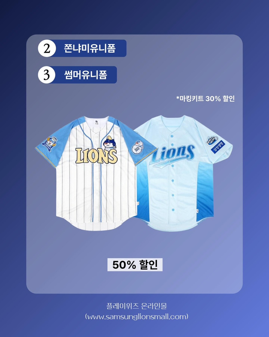 삼성 라이온즈 유니폼이랑 의류 세일이 시작됐어요