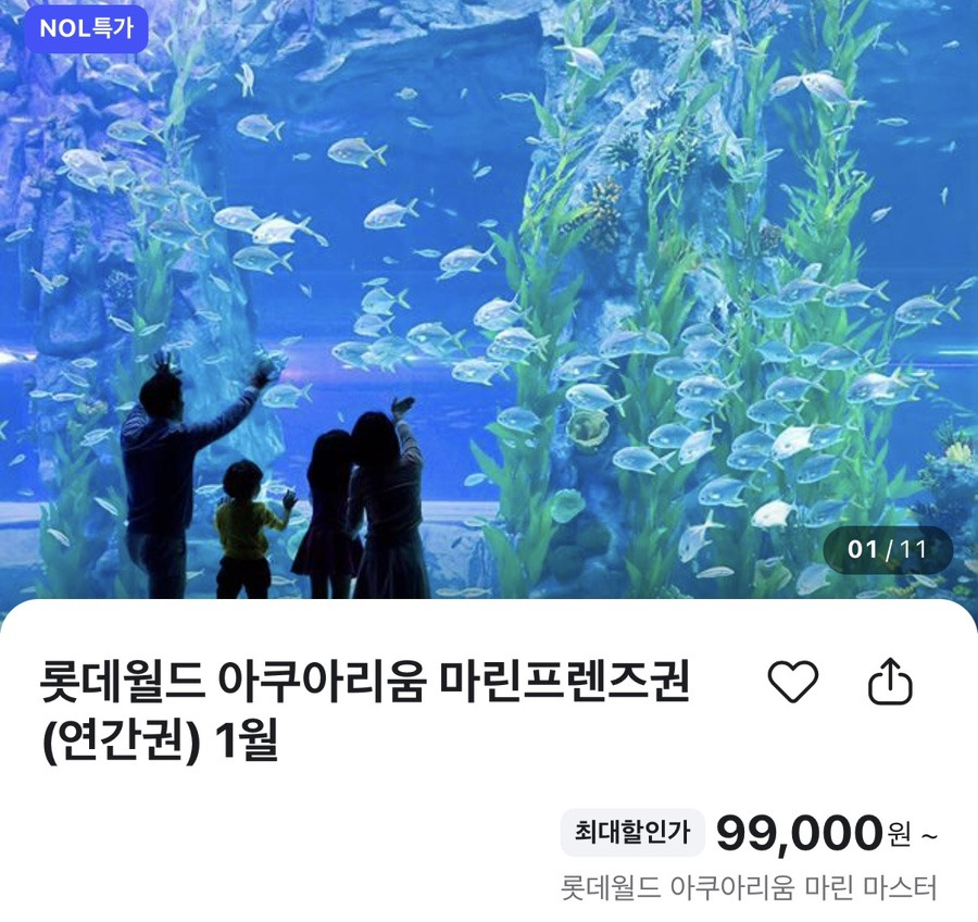 롯데월드 아쿠아리움 마린프렌즈 연간권 특가 바로가기